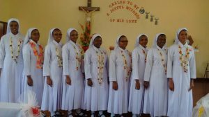 We raise our hearts in gratitude to the Almighty for blessing the province of Tanzania with the 9 newly professed sisters. The celebration of the first profession of our 9 novices was colorful. On the 9th of Dec. 2017 the Mass began at 10.00 am with the procession to the novitiate Chapel. The main celebrant Fr.Vivian Manezes OCD, concelebrated along with 4 more priests from the parish. There were 45 sisters include 4 novices from noviciate of various Congregations. The Provincial team was also present .The parents of the professed were present and those who came from Kenya arrived on the eve of the function. The neighbours and workers too were invited.